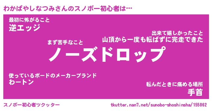 | 胡散臭い通販商品みたいなあだ名 | 『必ず成功するブレスレット…その名も「わかばやしなつみ」』 |
