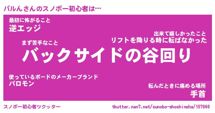 | 意味不明あだ名 | 『ペロリンパルん』『パルんフォーエバー』 |