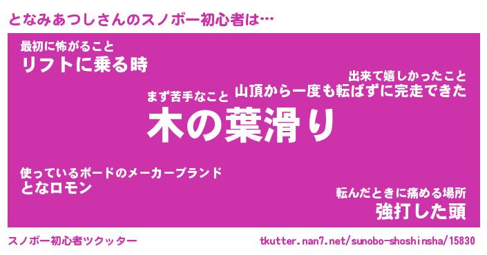 | 伝説のあだ名 | 『伝説のスナイパーとなみあつし』 |