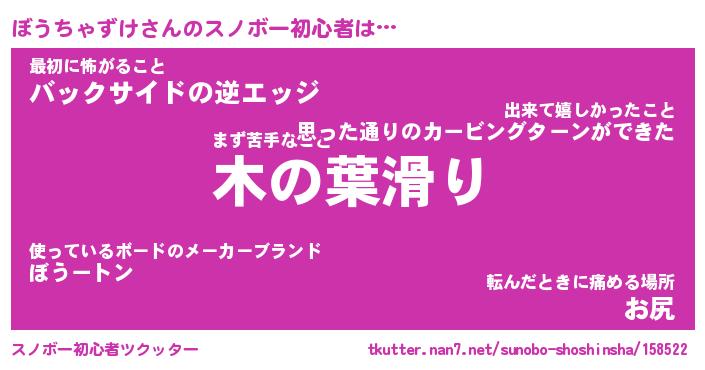 | ヘコむあだ名 | 『ぼうにー』『つくし』『ぼうお』 |