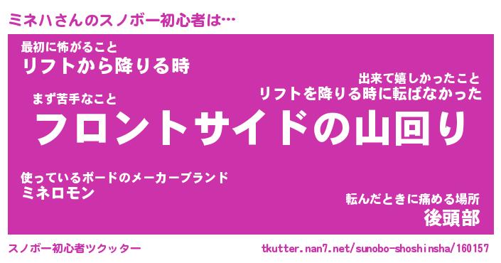 | ヘコむあだ名 | 『ミネっふぃ~』『レバニラ』 |