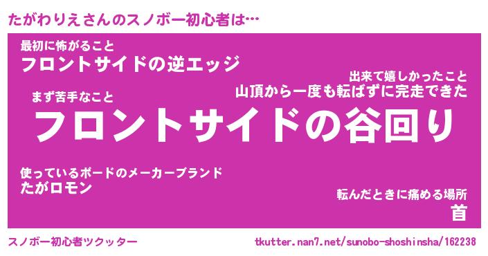 | ヘコむあだ名 | 『たがにゅー』『牛乳』『たがぷりん』 |