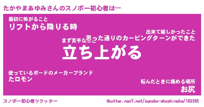 | 伝説のあだ名 | 『不死鳥のスナイパーたかやまあゆみ』 |