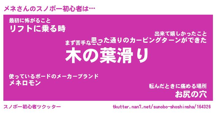 | ヘコむあだ名 | 『メネにゅー』『酢こんぶ』『メネお』 |
