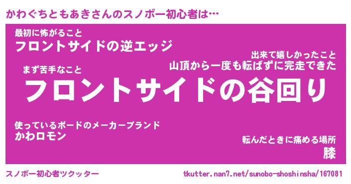| ヒーロー風カッコイイあだ名 | 『スーパーカワグチトモアキ』 |