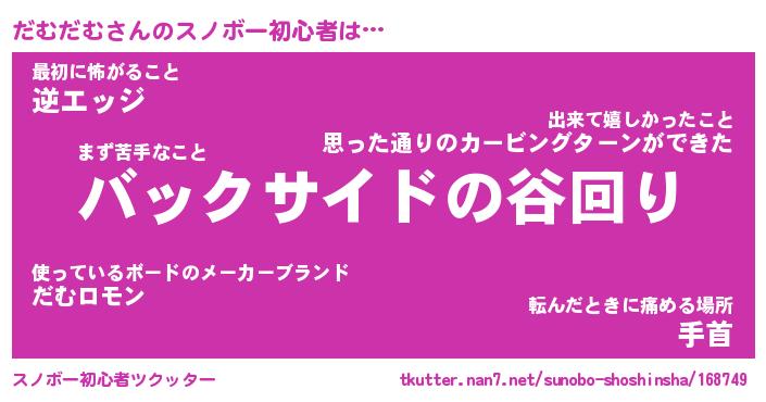 | ヘコむあだ名 | 『だむにー』『豆乳』『だむ太郎』 |