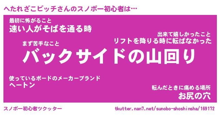 | ツイッター | へたれざこビッチさんのツイッターID『namakemono_nyan』 |