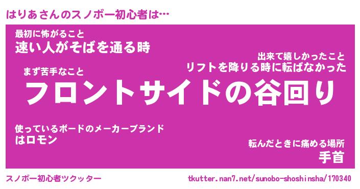 | 意味不明あだ名 | 『ペロリンはりあ』『はりあフォーエバー』 |