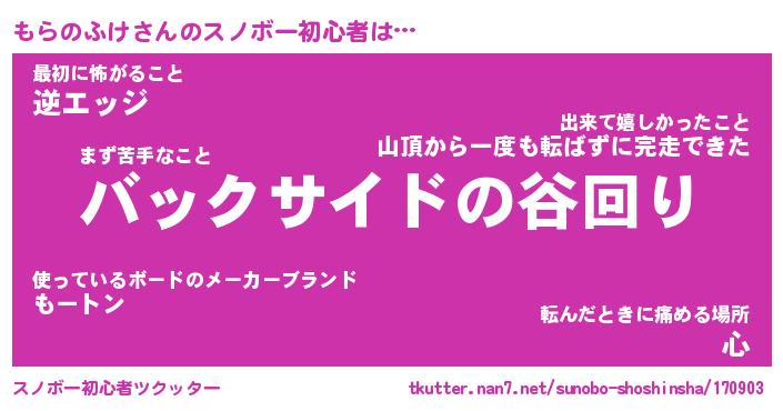 | ヘコむあだ名 | 『もらっふぃ~』『つくし』『もらお』 |