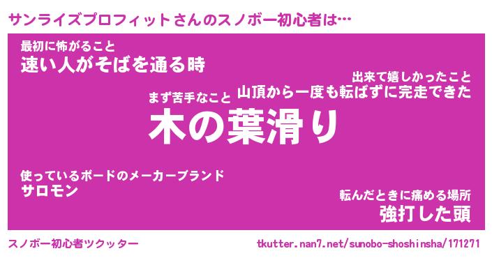 | 伝説のあだ名 | 『伝説のスナイパーサンライズプロフィット』 |