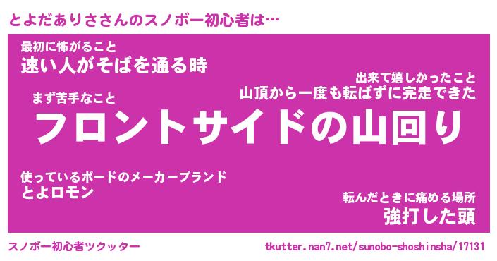| ヘコむあだ名 | 『とよっふぃ~』『酢こんぶ』 |