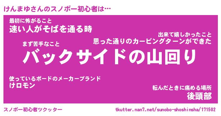 | 意味不明あだ名 | 『ペロリンけんまゆ』『永久保存けんまゆ』 |