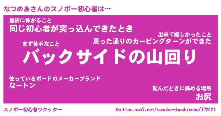 | 意味不明あだ名 | 『ペロリンなつめあ』『永久保存なつめあ』 |
