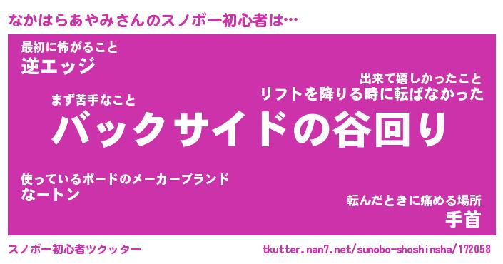 | ヘコむあだ名 | 『なかっふぃ~』『つくし』『なかを』 |