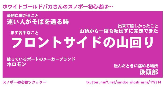 | 男性向けラノベタイトル風あだ名 | 『ホワイトゴールドバカアートオンライン』 |