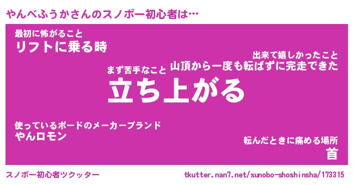 | 伝説のあだ名 | 『不死鳥のスナイパーやんべふうか』 |