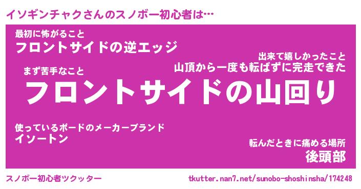 | ヘコむあだ名 | 『イソにー』『つくし』『イソを』 |