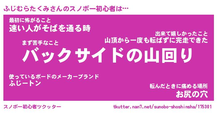 | ヘコむあだ名 | 『ふじにゅー』『酢こんぶ』 |