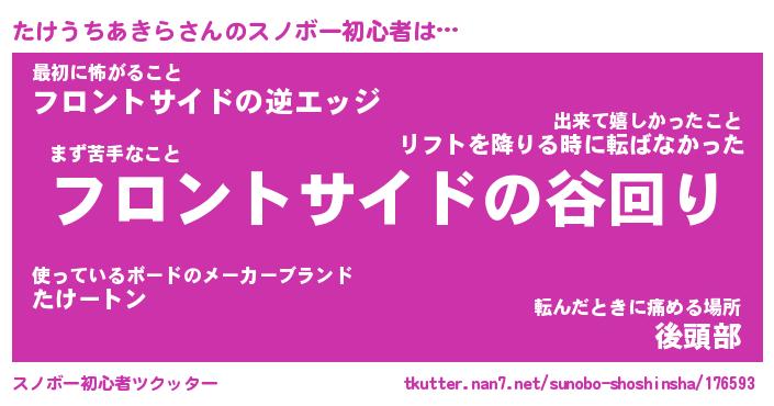 | ヘコむあだ名 | 『たけふぇ~』『牛乳』『たけっちょ』 |