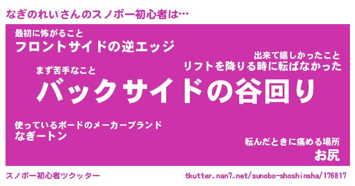 | ヘコむあだ名 | 『なぎもー』『つくし』『なぎ太郎』 |