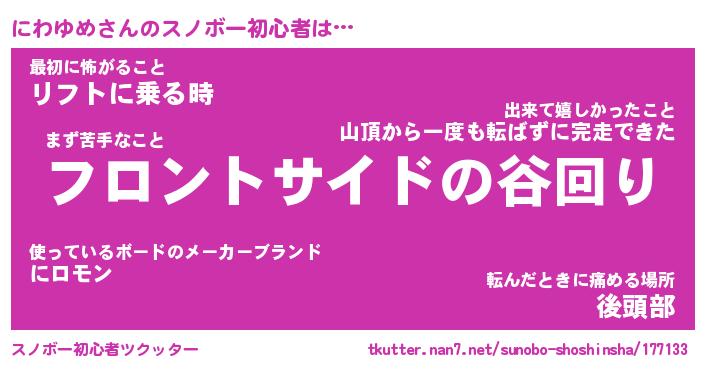 | ファンタジー風あだ名 | 『ニワフェル』『エターナルニワユメー』 |