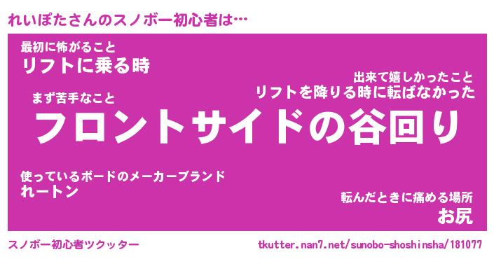 | 伝説のあだ名 | 『伝説のスナイパーれいぽた』 |