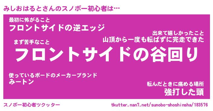 | 伝説のあだ名 | 『不死鳥のスナイパーみしおはると』 |