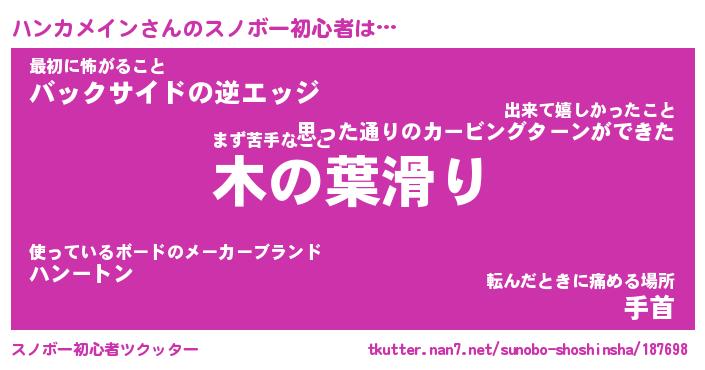 | ヘコむあだ名 | 『ハンにゅー』『牛乳』『ハン太郎』 |