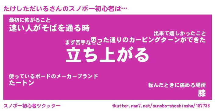 | ヘコむあだ名 | 『たけにゅー』『酢こんぶ』 |