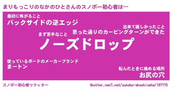 | 男性向けラノベタイトル風あだ名 | 『まりもっこりのなかのひとの憂鬱』 |