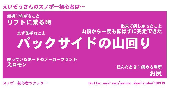 | 意味不明あだ名 | 『ペロリンえいぞう』『永久保存えいぞう』 |