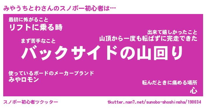 | ヘコむあだ名 | 『みやにゅー』『つくし』『みやを』 |