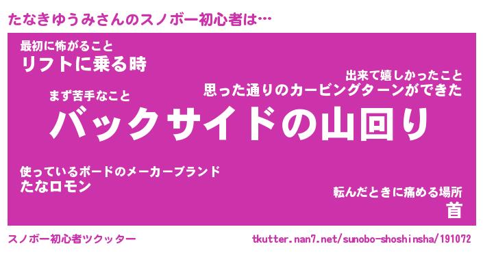 | ヘコむあだ名 | 『たなにー』『酢こんぶ』『たな太郎』 |