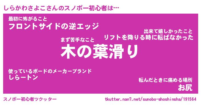 | ヘコむあだ名 | 『しらにゅー』『つくし』『しらお』 |