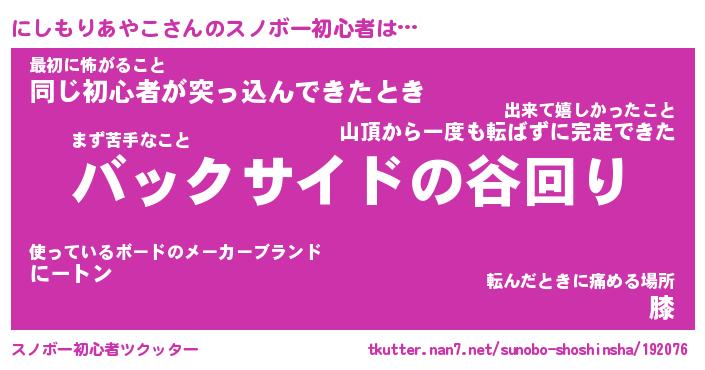 | 肩書あだ名 | 『にしもりあやこ御曹司』 |