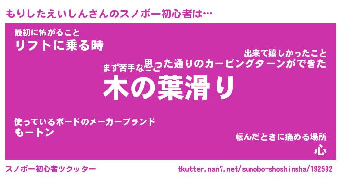 | ヘコむあだ名 | 『もりにゅー』『酢こんぶ』『もりを』 |