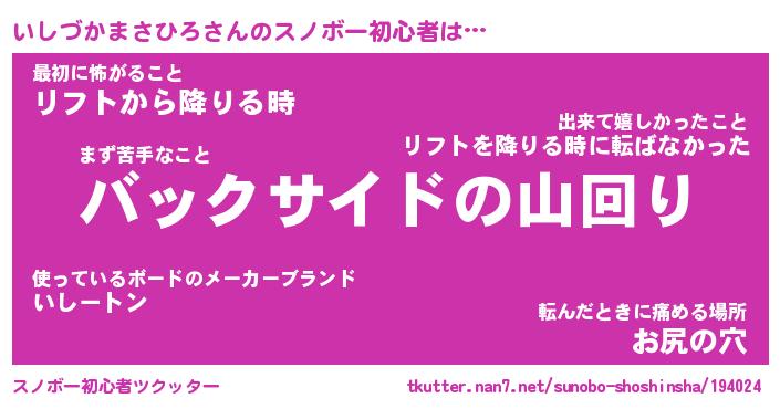 | 肩書あだ名 | 『いしづかまさひろ店長』 |