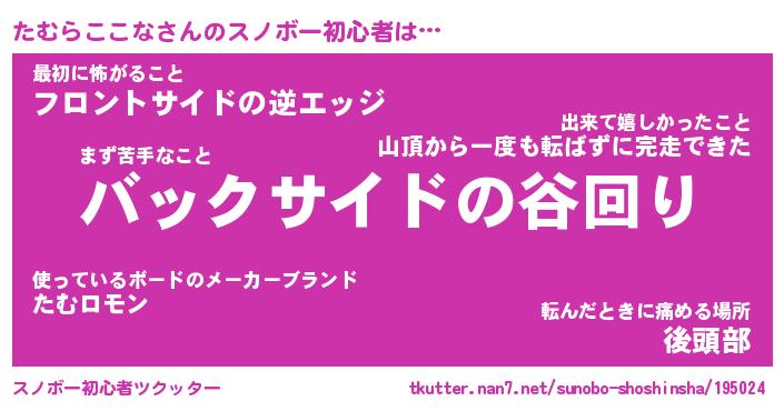 | ヒーロー風カッコイイあだ名 | 『スーパータムラココナ』『炎刃騎士タム』 |