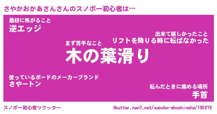 | 伝説のあだ名 | 『伝説のスナイパーさやかおかあさん』 |