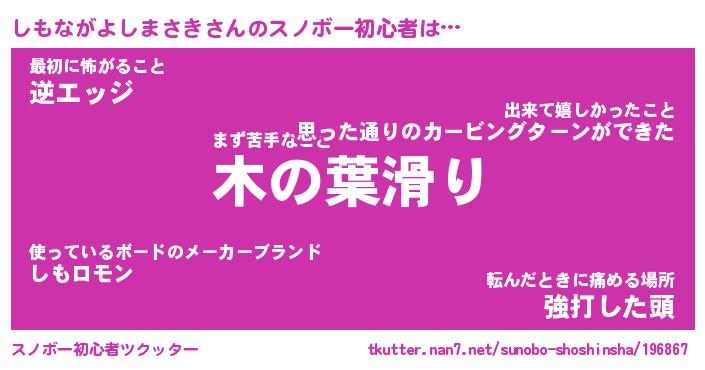 | ヘコむあだ名 | 『しもにゅー』『つくし』 |