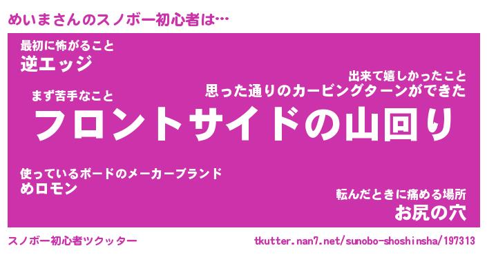 | 意味不明あだ名 | 『ペロリンめいま』『めいまフォーエバー』 |