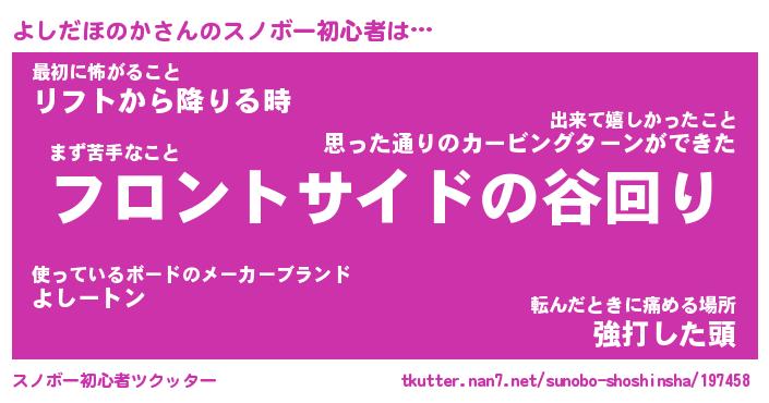 | ヒーロー風カッコイイあだ名 | 『スーパーヨシダホノカ』『炎刃騎士ヨシ』 |