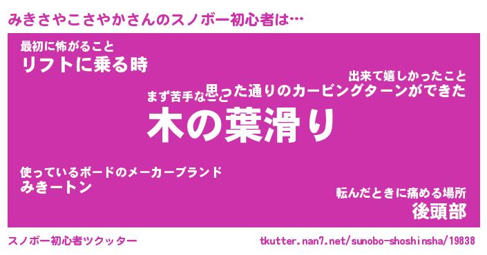 | ヘコむあだ名 | 『みきにゅー』『牛乳』『みきお』 |