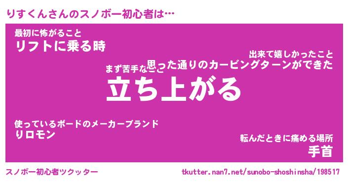 | ヘコむあだ名 | 『りすにゅー』『酢こんぶ』『りすお』 |