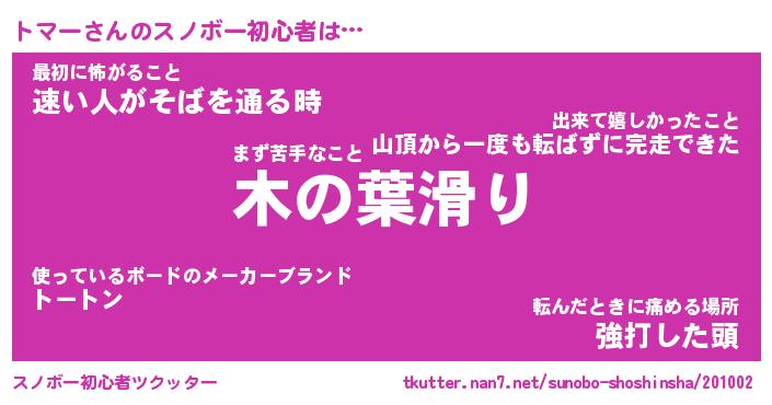 | 意味不明あだ名 | 『ペロリントマー』『トマーフォーエバー』 |