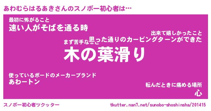 | ヘコむあだ名 | 『あわもー』『つくし』『あわを』 |