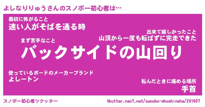 | 肩書あだ名 | 『よしなりりゅう御曹司』 |