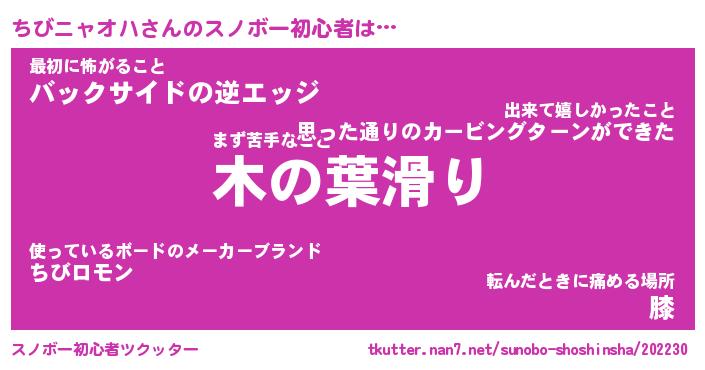 | 意味不明あだ名 | 『ペロリンちびニャオハ』 |