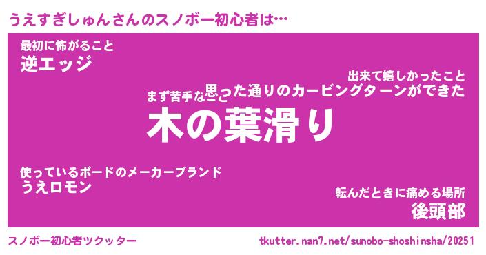 | 意味不明あだ名 | 『ペロリンうえすぎしゅん』 |
