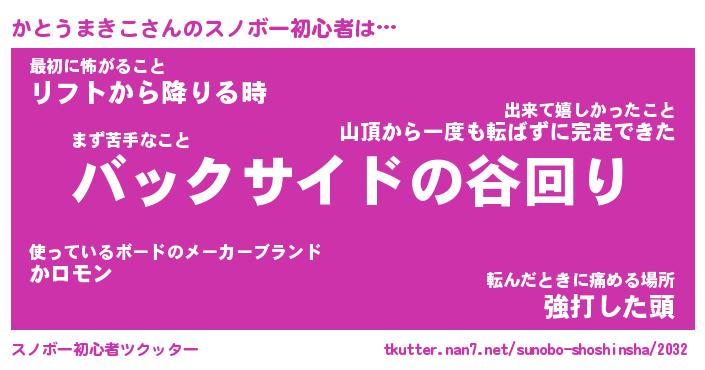 | 伝説のあだ名 | 『封印されしスナイパーかとうまきこ』 |